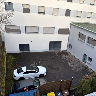 Der von massiven Betonwänden umschlossene Hinterhofparkplatz wirkt wie ein akustischer Trichter, der sämtliche Geräusche stark verstärkt.
