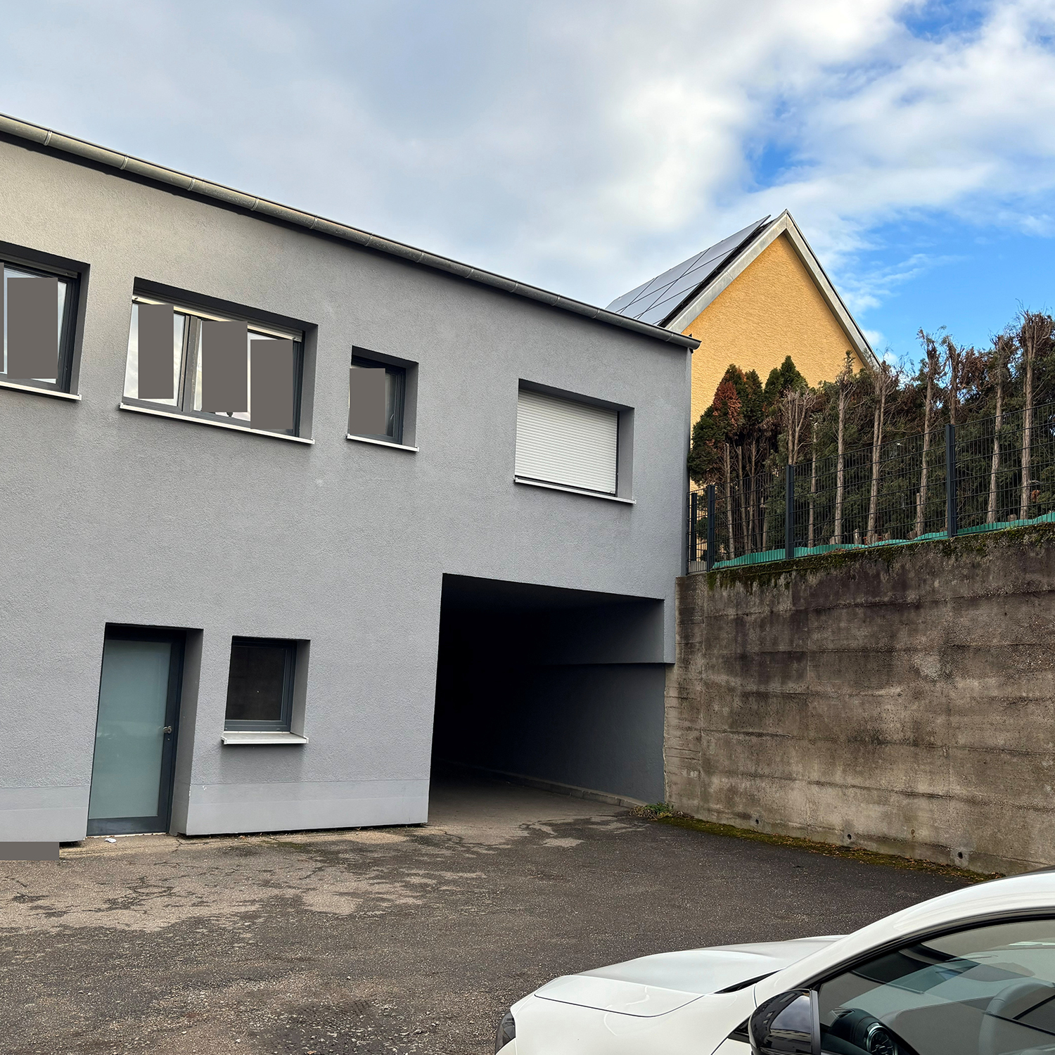 Ein moderne Lärmschutzlösung im Außenbereich, speziell hinter dem Haus im Innenhof, ist zwingend notwendig.